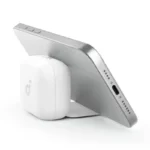 هدفون بیسیم انکر SoundCore R50i NC از طراحی ایربادهای ساقهای استفاده میکند و میتوان از پشت کیس شارژ آن بهعنوان پایهای برای نگه داشتن گوشی استفاده کرد. هدفون انکر گواهینامهی مقاومت در برابر آب IPX5 را دارد که آن را برای استفاده هنگام ورزش و در محیطهای مرطوب به گزینهی مناسبی تبدیل میکند.