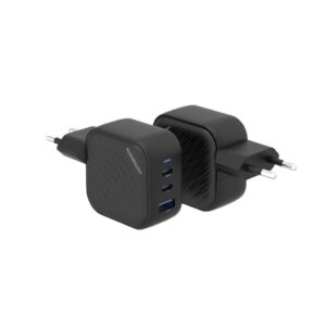 شارژر دیواری فست تایپ سی و یو اس بی 65 وات پاورولوژی PWCUQC019 با سه درگاه که شامل دو پورت تایپ سی و یک درگاه یو اس بی است طراحی کرده تا امکان شارژ انواع دستگاههای برقی برایتان وجود داشته باشد؛ از توان بالایی برخوردار است و میتوانید لپتاپ خود را هم با کمک آن شارژ کنید. ابعاد جمعوجوری دارد و دو شاخه آن با پریزهای ایران سازگار است. در ضمن از تکنولوژی GaN برخوردار است و آداپتورهایی که به این فناوری تجهیز میشوند، اولاً سبکترند و از ابعاد کوچکتری برخوردار و دوماً اتلاف انرژی کمتر و سرعت بیشتری در انتقال الکتریسیته دارند. استفاده از مواد GaN در شارژر فوق فشرده 65 واتی GaN باعث صرفه جویی در فضای این شارژر شده است. در نتیجه سایز این محصول نسبت به محصولات مشابه کوچک است. شارژ قدرتمند پاورولوژی GaN Ultimate-EU Dual PD 65W آداپتور 65 وات تایپ سی و یو اس بی پاورولوژی مدل PWCUQC019 با استفاده از فناوری GaN می توانید دستگاه های خود را سریعتر از شارژرهای سنتی شارژ کنید. این محصول می تواند ظرف 35 دقیقه دستگاه شما را از 0% تا 60% شارژ کند. GaN یا همام گالیوم نیترید یک یک ماده نیمهرسانا با پهنای باند گسترده و بسیار مستحکم است و علاوه بر کارایی بیشتر در انتقال جریان، دارای تلفات گرما حداقلی است و حداکثر انرژی را به دستگاه متصل منتقل میکند. از آنجایی که انتقال انرژی بسیار کارآمد است، اجزای کمتر برای انتقال جریان کافی است و درنتیجه باعث کوچکتر شدن ابعاد شارژر می گردد. این شارژر هوشمند جمع و جور 65 واتی PD GaN می تواند به طور خودکار قدرت مناسب دستگاه شما را تشخیص دهد و خروجی را بر اساس آن تعیین کند. دو درگاه از نوع Type-C با خروجی 65 وات و USB با توان 36 وات دارد و به راحتی میتوانید دو دستگاه را به صورت همزمان برقرسانی کنید. این شارژر به اندازه کافی قدرتمند است که به عنوان یک شارژر لپتاپ عمل کند. در صورت استفاده همزمان از درگاهها خروجی بین آنها تقسیم شده و کاهش مییابد که به شرح زیر است: خروجی تایپ سی یک: 5V/3A, 9V/3A, 12V/3A. 15V/3A, 20V/3.25a = 65W Max خروجی تایپ سی دو: 5V/3A, 9V/3A, 12V/3A. 15V/3A, 20V/3.25a = 65W Max خروجی یو اس بی: USB-A: 5V / 2.4a, 9V / 2A, 12V / 1.5a, 18W