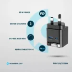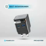 شارژر GaN قابل جمع شدن Powerology Dual Port یک راه حل شارژ همه کاره و با کارایی بالا است که می تواند چندین دستگاه را به سرعت شارژ کند. حداکثر خروجی آن 65 وات برای شارژ سریع USB-C و USB-A است. در اینجا، کابل و پورت خروجی 65 وات را بدون زحمت فراهم میکنند و قابلیت شارژ سریع لپتاپ، تبلت و گوشیهای هوشمند تا حداکثر 18 وات را از طریق درگاه USB-A برای دستگاههای دیگر اضافه میکنند. هنگامی که به همه پورت ها به طور همزمان وصل می شود، خروجی ترکیبی 65 وات با تضمین شارژ همزمان سه دستگاه وجود خواهد داشت. کابل جمع شونده Type-C 75 سانتی متر است که با سازماندهی و بدون گره خوردن، قابلیت حمل راحت را اضافه می کند. مواد PC مات نسوز در ساخت و ساز استفاده می شود که ایمنی را تضمین می کند اما در طول زمان خراب نمی شود. سایر ویژگی ها، مانند محافظ های داخلی در برابر گرمای بیش از حد، شارژ بیش از حد و اتصال کوتاه، از این امر پشتیبانی می کنند. طراحی ثبت اختراع و دوشاخه 3 پین بریتانیا به آن سبکی فوقالعاده و کاربردی میدهد. این شارژر می تواند دستگاه ها را از 0% تا 60% تنها در 35 دقیقه تغذیه کند و آن را به شارژر ایده آلی برای برق سریع، ایمن و مطمئن در خانه یا در حال حرکت تبدیل می کند.