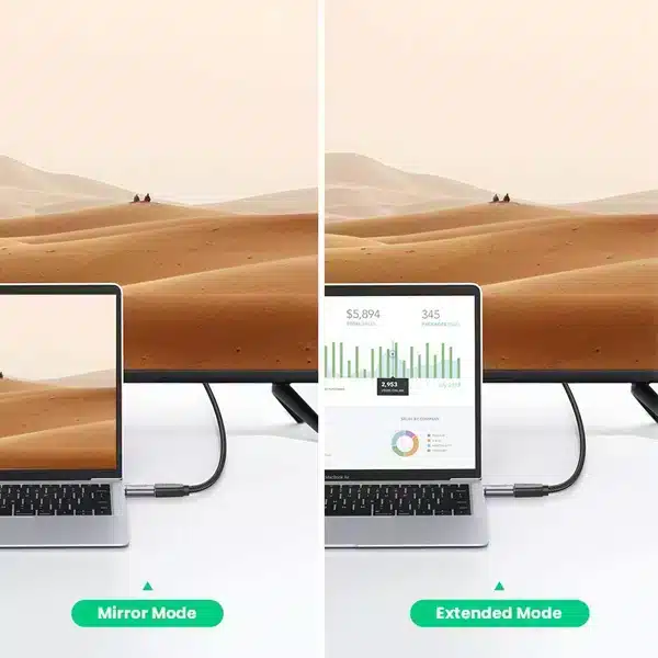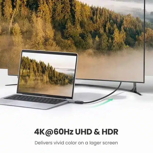 مبدل Type C به مادگی HDMI یوگرین مدل US320-70450 دارای یک بدنه آلومینیومی بوده قابلیت انتقال تصویر با کیفیت 4K و رزولوشن 3840×2160@60Hz و Full HD 1080p را دارد. با توجه به Type-C بود این آداپتور به راحتی میتوانید تصویر لپ تاپ هایی که دارای TYPE-C هستند را به تلویزیون، پرژکتور و غیره انتقال دهید.