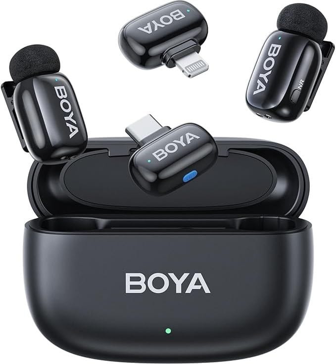 میکروفون یقه ای دو کاربره بی سیمِ بویا سری مینی مخصوص گوشی های هوشمند در پکیج های گوناگون، که شما بر اساس نوع گوشیتان می توانید یکی ار آنها را انتخاب کنید.