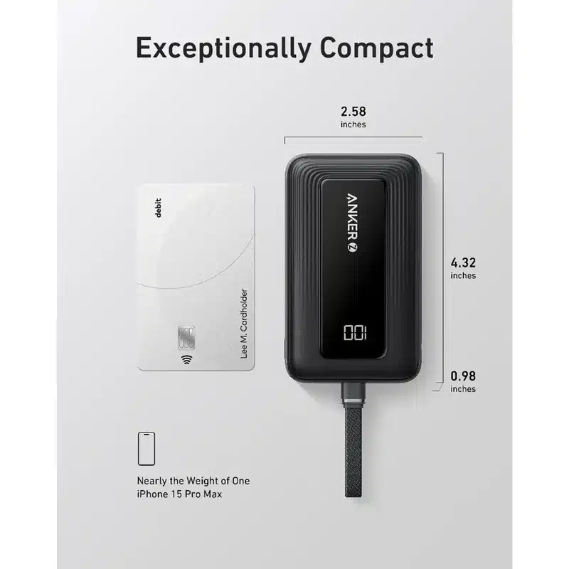 خروجی: تا ۳۰ وات (شارژ سریع USB-C) / ورودی: ۲۰ وات (شارژ سریع دوطرفه USB-C) / شارژ آیفون ۱۵: از ۰ تا ۵۷ درصد در ۳۰ دقیقه / حدوداً ۲ بار شارژ کامل برای آیفون ۱۵ / ۱.۹۴ بار شارژ برای سامسونگ S۲۴ / |