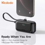 دارای 3 خروجی = پورت تایپ سی 22.5 وات + کابل متصل تایپ سی 22.5وات + پورت متصل لایتنینگ 20وات
