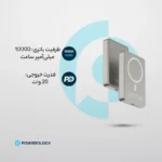 پاور بانک 10 هزار میلی امپر از برند پاور لوژی با قابلیت شارژ وایرلس . دارای باتری از جنس لیتیم پلیمری زد شوک . قابلیت فست شارژ با توان 20 وات با کابل و 15 وات وایرلس است
