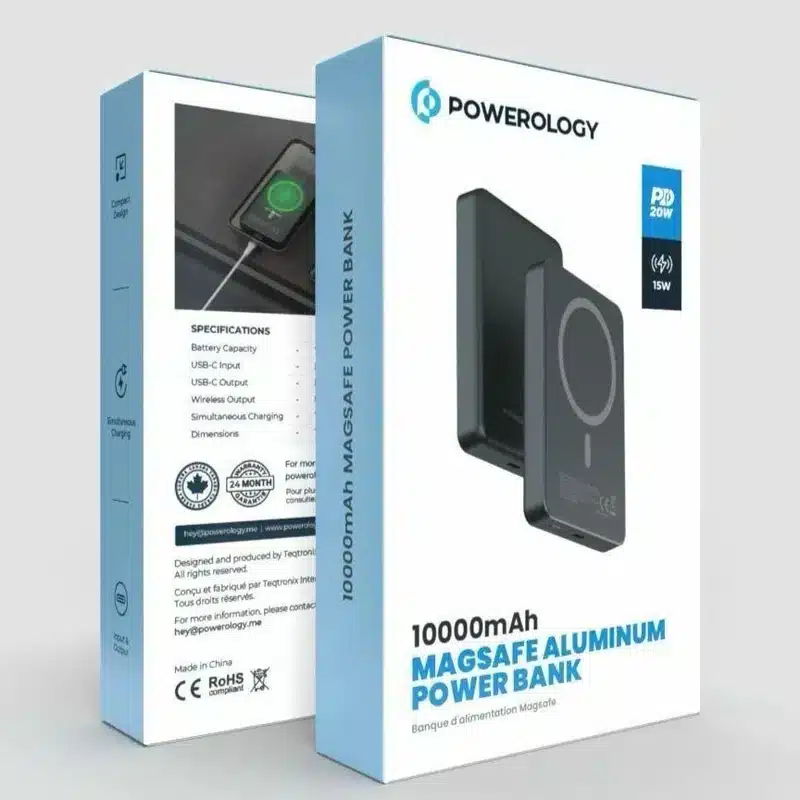 پاور بانک 10 هزار میلی امپر از برند پاور لوژی با قابلیت شارژ وایرلس . دارای باتری از جنس لیتیم پلیمری زد شوک . قابلیت فست شارژ با توان 20 وات با کابل و 15 وات وایرلس است