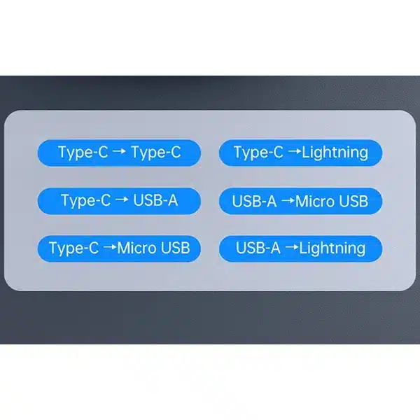 micro-B microUSB لایتنینگ USB Type-C USB |
