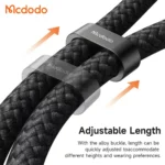 بند آویز کابل شارژ لپ تاپ مک دودو Mcdodo CA-683 دارای یک قلاب آلیاژی از جنس روی است که به راحتی قابل تنظیم است. این ویژگی به شما اجازه میدهد تا طول بند را متناسب با قد و سلیقه شخصی خود تنظیم کنید. این قابلیت باعث میشود که استفاده از کابل برای افراد با قدهای مختلف راحت باشد.