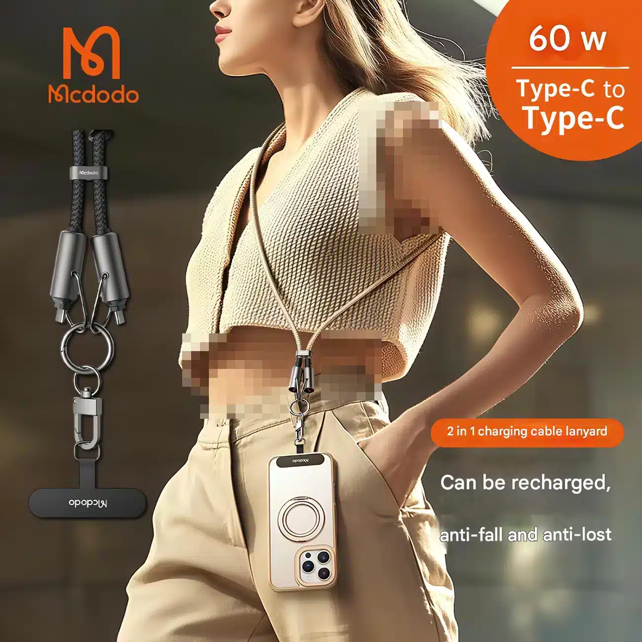 کابل دوسر تایپسی مک دودو با طراحی 2در1 به عنوان هم کابل شارژ و هم بند آویز عمل میکند. این طراحی به شما اجازه میدهد تا در حین استفاده از دستگاههای همراه خود، دستانتان آزاد باشد. این ویژگی برای سفر، کارهای روزمره و حتی خرید بسیار مناسب است. با این کابل، میتوانید گوشی، هدفون یا حتی کلیدهای خود را به راحتی حمل کنید و دیگر نگران افتادن آنها نباشید.