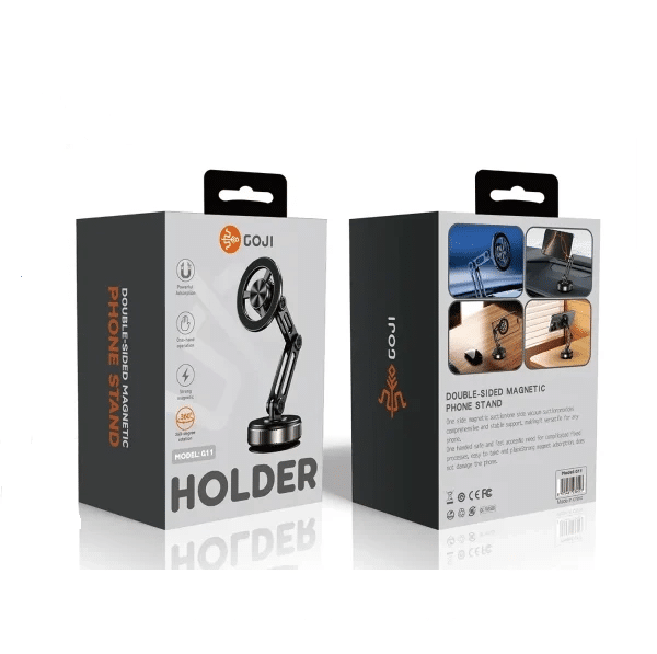 هولدر Goji مدل G11 یک پایه نگهدارنده موبایل دوطرفه است که با ترکیب فناوری مکنده (Vacuum Suction) و مغناطیس قوی (Magnetic Adsorption) پایداری و استحکام بالایی برای نگهداری گوشی فراهم میکند. این طراحی باعث شده بدون نیاز به گیره یا پیچهای پیچیده، گوشی خود را تنها با یک حرکت ساده قرار دهید یا بردارید.