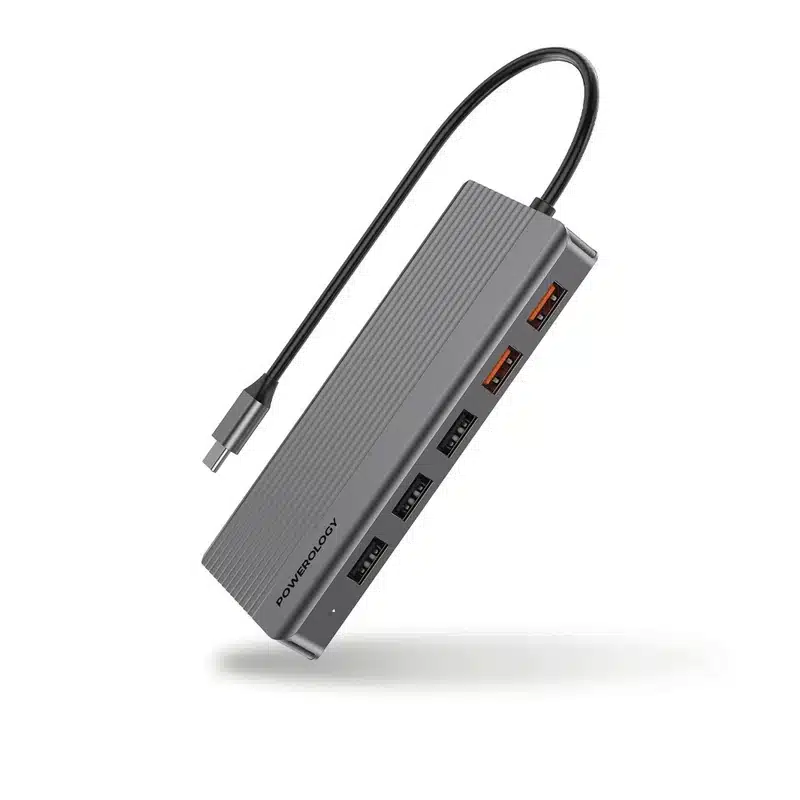 هاب 12 پورت پاورولوجی مدل p121hbcgy Powerology 12-in-1 Slim 4K HDMI USB-C Hub